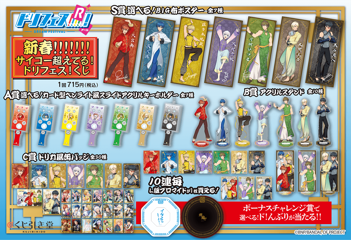 大好評の声にお応えして! 「ドリフェス!R」がくじ引き堂に再び登場! 新規デザインのチャイナ服を身に纏ったイラストを使用した豪華景品が盛りだくさん!!