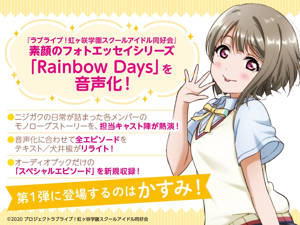 『ラブライブ!虹ヶ咲学園スクールアイドル同好会 素顔のフォトエッセイシリーズ Rainbow Days』をオーディオブック化! 第1弾・中須かすみ(CV:相良茉優)は12月18日発売!!