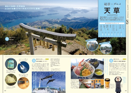 さらに特別企画として、九州の日帰りドライブプランを大特集。眺望の良い温泉で癒される別府・湯布院エリアのほか、シーサイドドライブが楽しい糸島エリア、新鮮な海の幸を味わえる天草エリアなど、オススメの10コースを紹介。入浴料割引やドリンク無料などのサービスが受けられる、お得な特典クーポンも付いています。