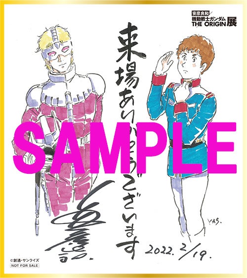 『安彦良和/機動戦士ガンダム THE ORIGIN展』にご来場頂きましたお客様に、入場特典として限定ミニ色紙を1枚、展覧会会場の入口でお渡しいたします。