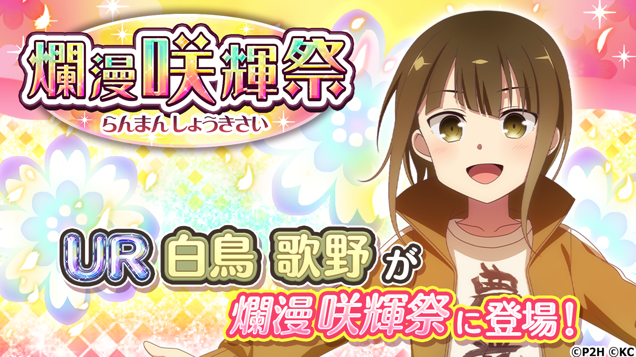 株式会社KADOKAWA(本社:東京都千代田区、代表取締役社長:夏野剛、以下KADOKAWA)と株式会社オルトプラス(本社:東京都豊島区、代表取締役CEO:石井 武、東証1部:3672)は、大好評配信中のスマートフォンゲーム・PCブラウザゲーム『結城友奈は勇者である 花結いのきらめき』(略称:ゆゆゆい)において、白鳥歌野(CV:諏訪 彩花)が新UR勇者として登場する『爛漫 咲輝祭』を開催したことをお知らせします。