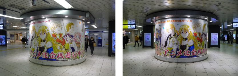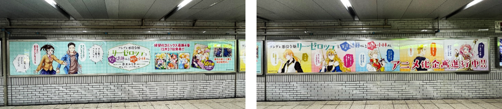 池袋では、JR池袋駅改札外北通路と東武東上線池袋駅改札外、渋谷では、田園都市線渋谷駅B2階ハチ公改札付近にそれぞれ大型広告を展開。すべてコミカライズ担当の逆木ルミヲ先生による描き下ろしイラストを使用した広告となっております。駅にお立ちよりの際は是非ご確認ください!!