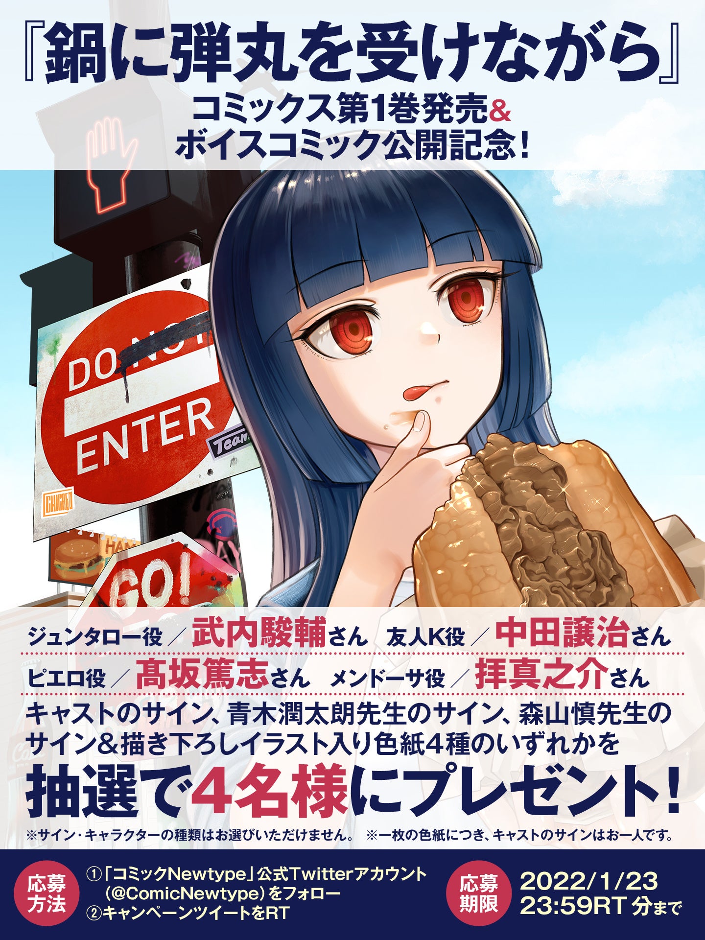 【中田譲治、武内駿輔など豪華声優出演のボイスコミックも公開中!】SNSで話題沸騰のコミックス「鍋に弾丸(たま)を受けながら」が遂に本日発売‼