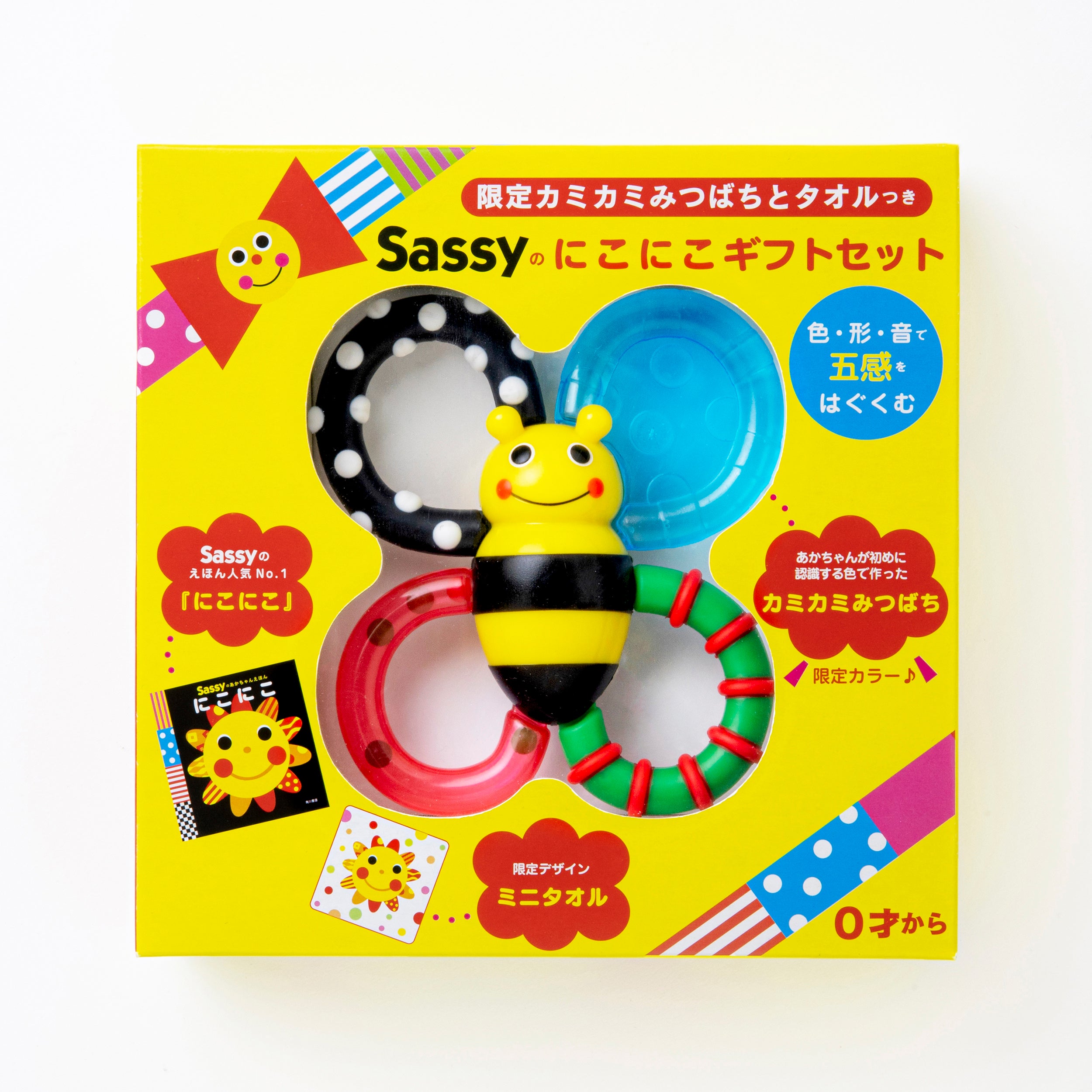 - 出産・誕生日・入園のお祝いにぴったり!『【限定カミカミみつばちとタオルつき】Sassyのにこにこギフトセット』を新発売。