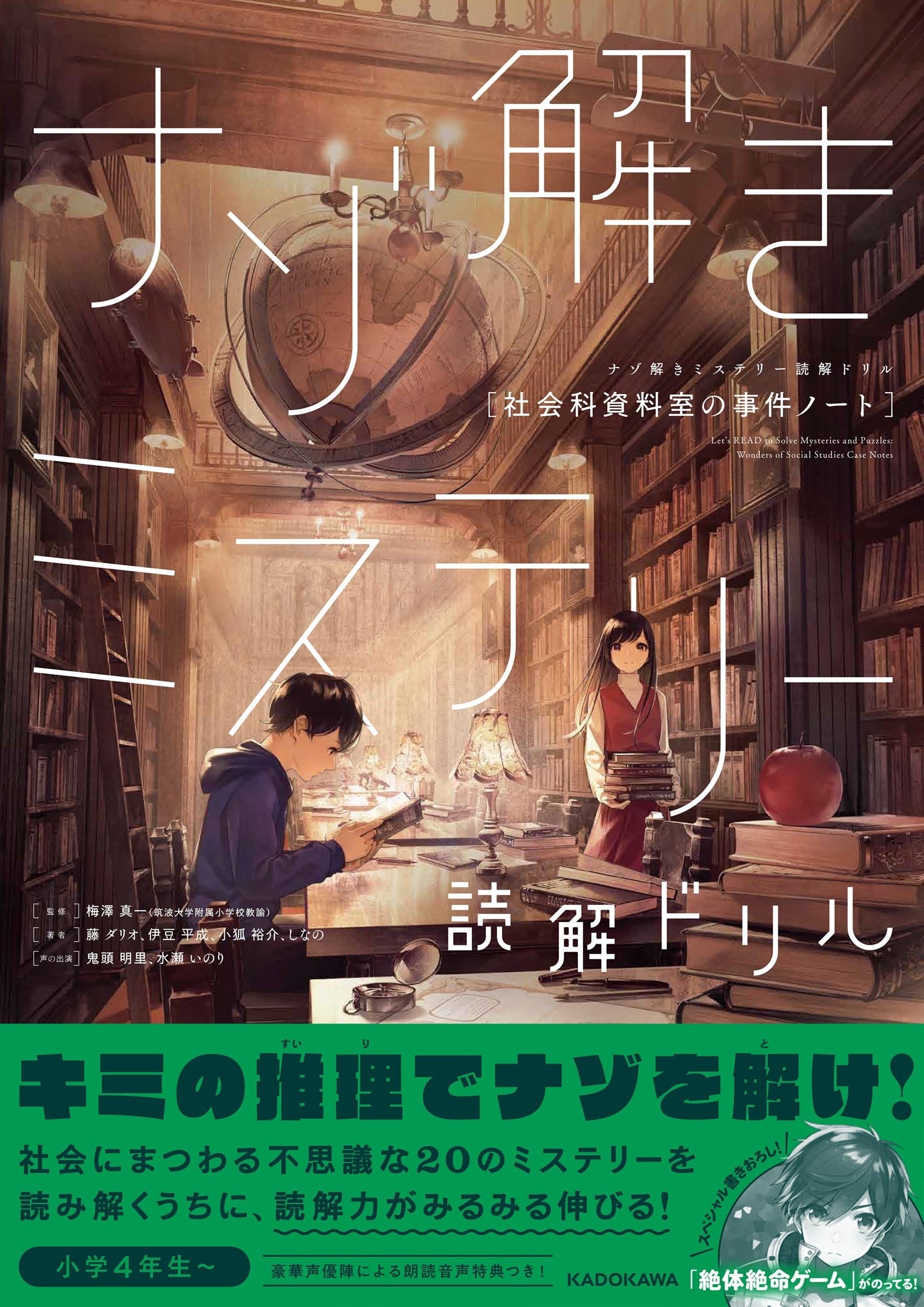 本書は、話題のクリエイター陣とKADOKAWAのコラボによって実現した、小学生向けの読解ドリルです。理科や社会にまつわる短編の推理物語を人気作家陣が新たに書き下ろし、すべての物語に声優・鬼頭明里さんと水瀬いのりさんの「朗読音声データ特典」が用意されています。発売に先立ち、鬼頭明里さん、水瀬いのりさんのナレーションによる、プロモーションムービーを公開いたしました。