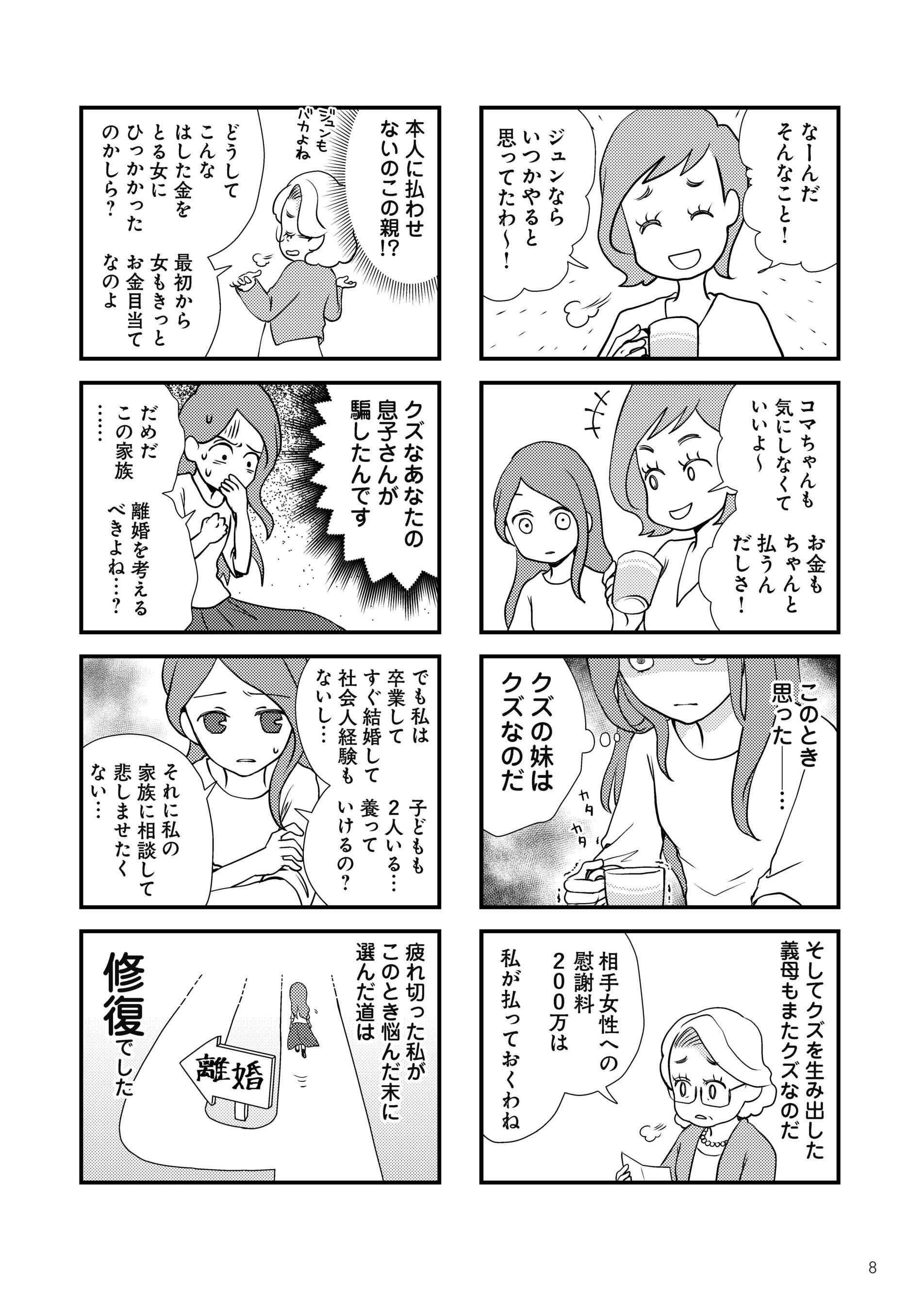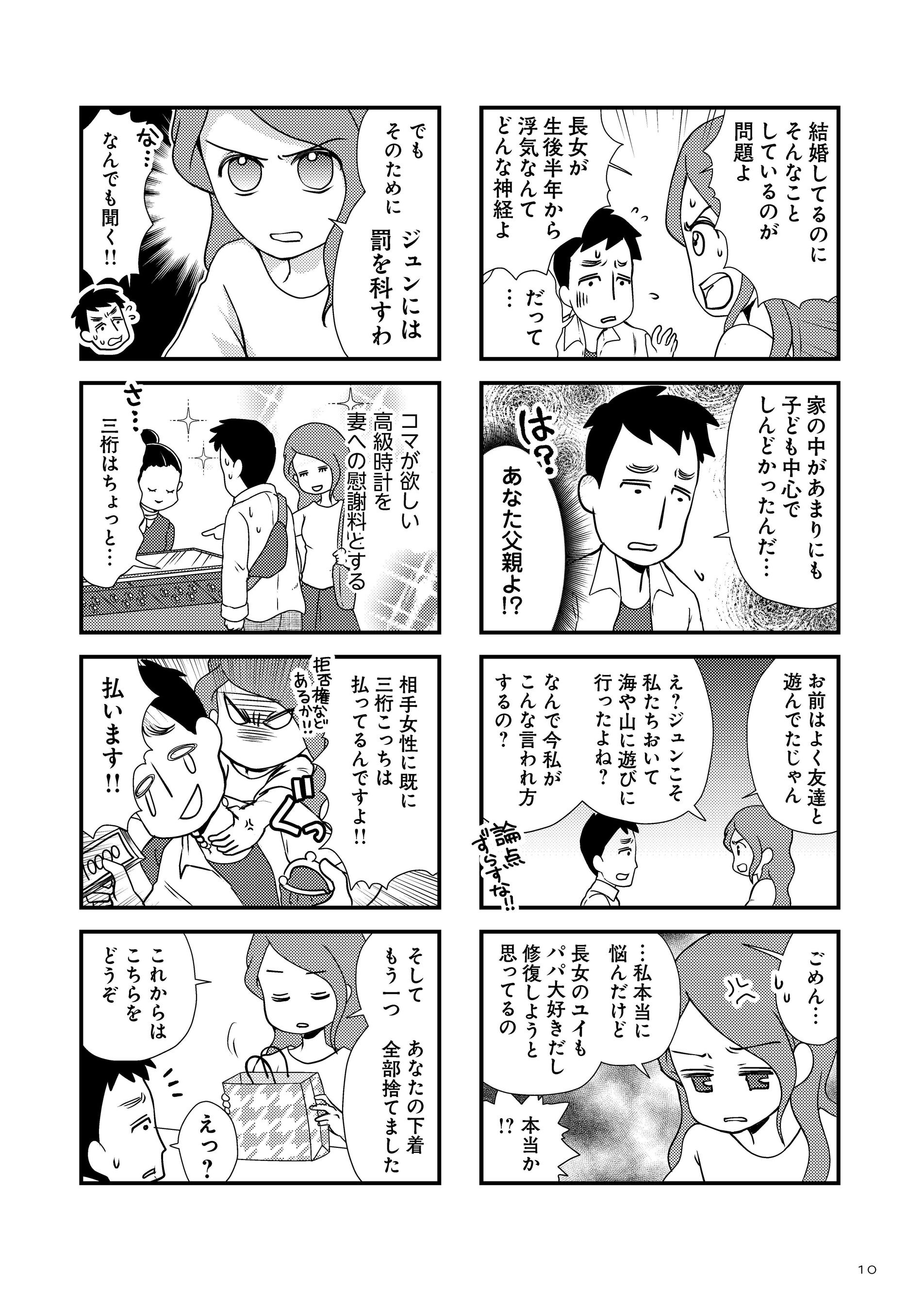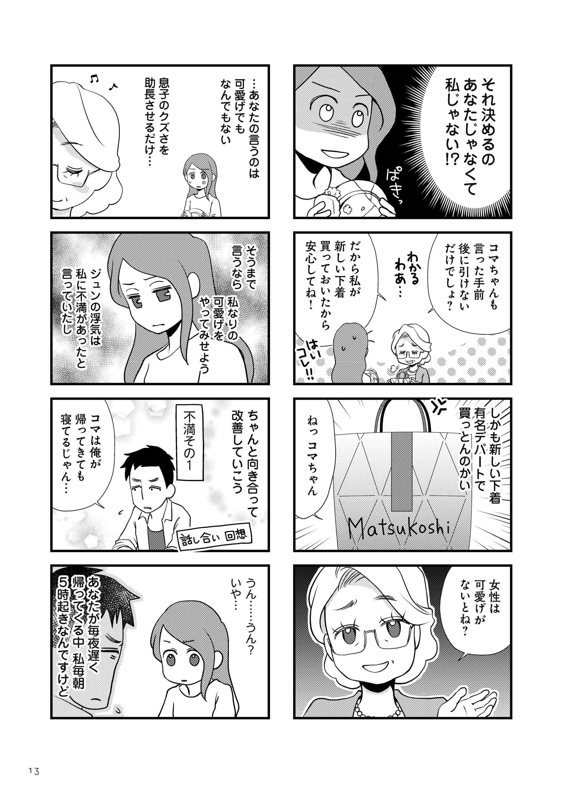 専業主婦のコマは過去旦那の不倫で警察沙汰&慰謝料などで振り回された経験があることから、旦那に不倫は二度としないと約束させていた。にもかかわらず、またも不倫の匂い! コマは探偵事務所に相談することに。