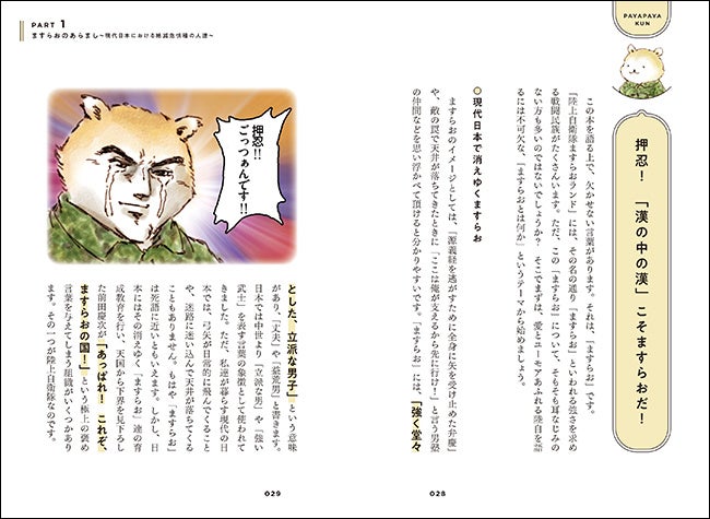 SNSで話題沸騰中の元陸上自衛官・ぱやぱやくん(@paya_paya_kun)が描く、愛とユーモアにあふれた自衛隊ライフがついに書籍化。ユーモアのある語り口と、原田みどり先生の愛らしくもシュールなイラストのコラボで、自衛官の知られざる“オフ”の姿を描きます。