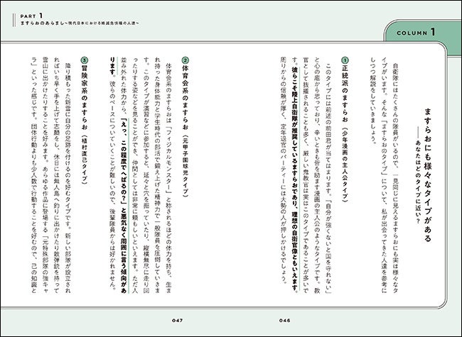 この本ではそういったますらおの与太話を集め、陸上自衛官のユーモアあふれる日常や恋愛事情、家族生活などを描くおそらく史上初の本です。