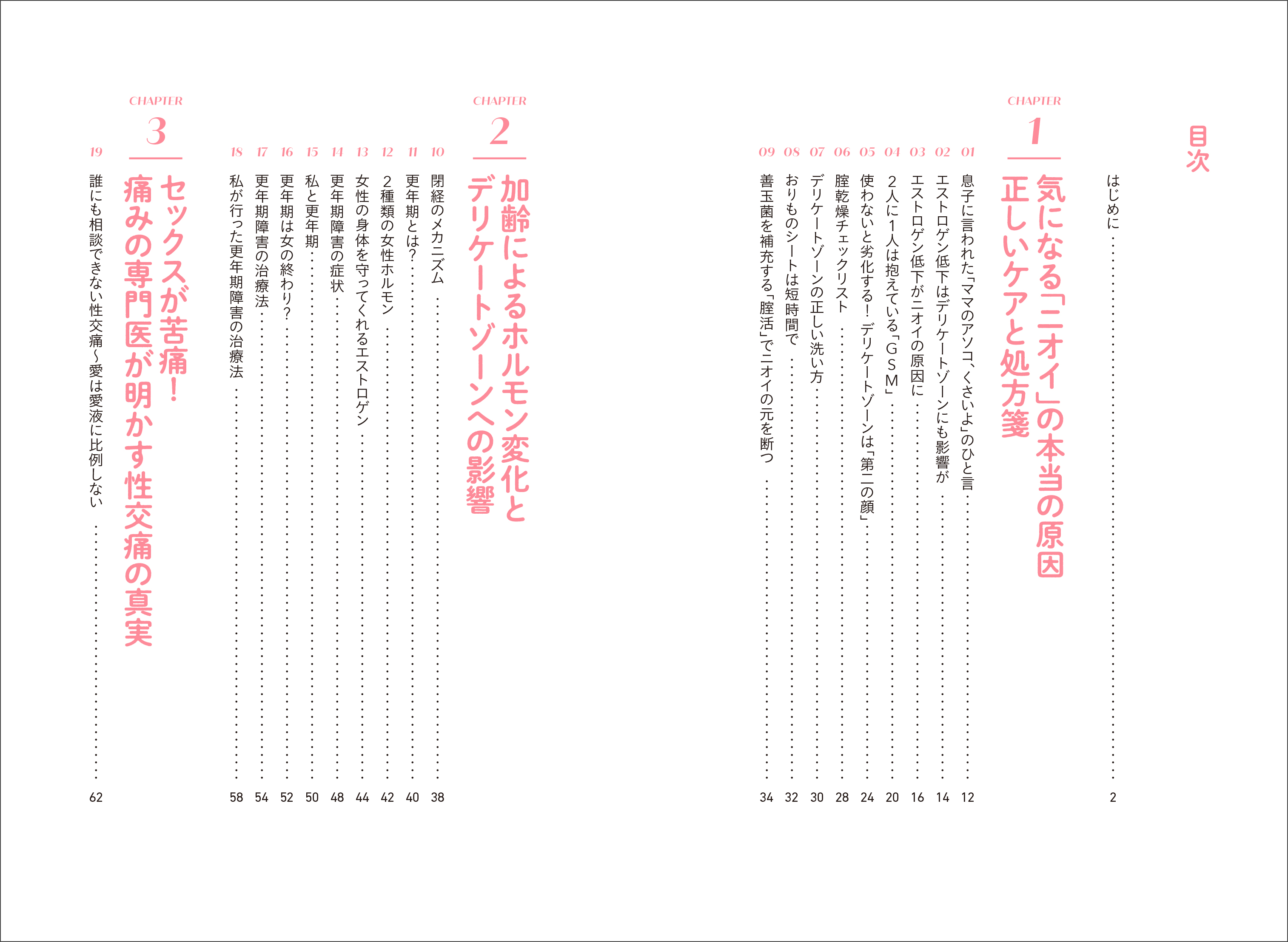 加齢によるホルモン変化、更年期障害を和らげる方法、痛み・ニオイ・SEXレスの処方箋、自宅でできるデリケートゾーンケア etc.