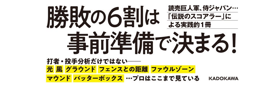 試合会場の光(太陽光、照明)、風、フェンスとの距離、ファウルゾーン、マウンド、バッターボックスなどの試合前の準備に始まり、試合中における配球チャートのつけ方、投手分析(バッテリー分析含む)、打者分析から相手チーム攻略のための視点と実行方法まで、プロスコアラーの技術すべてを明かしています。