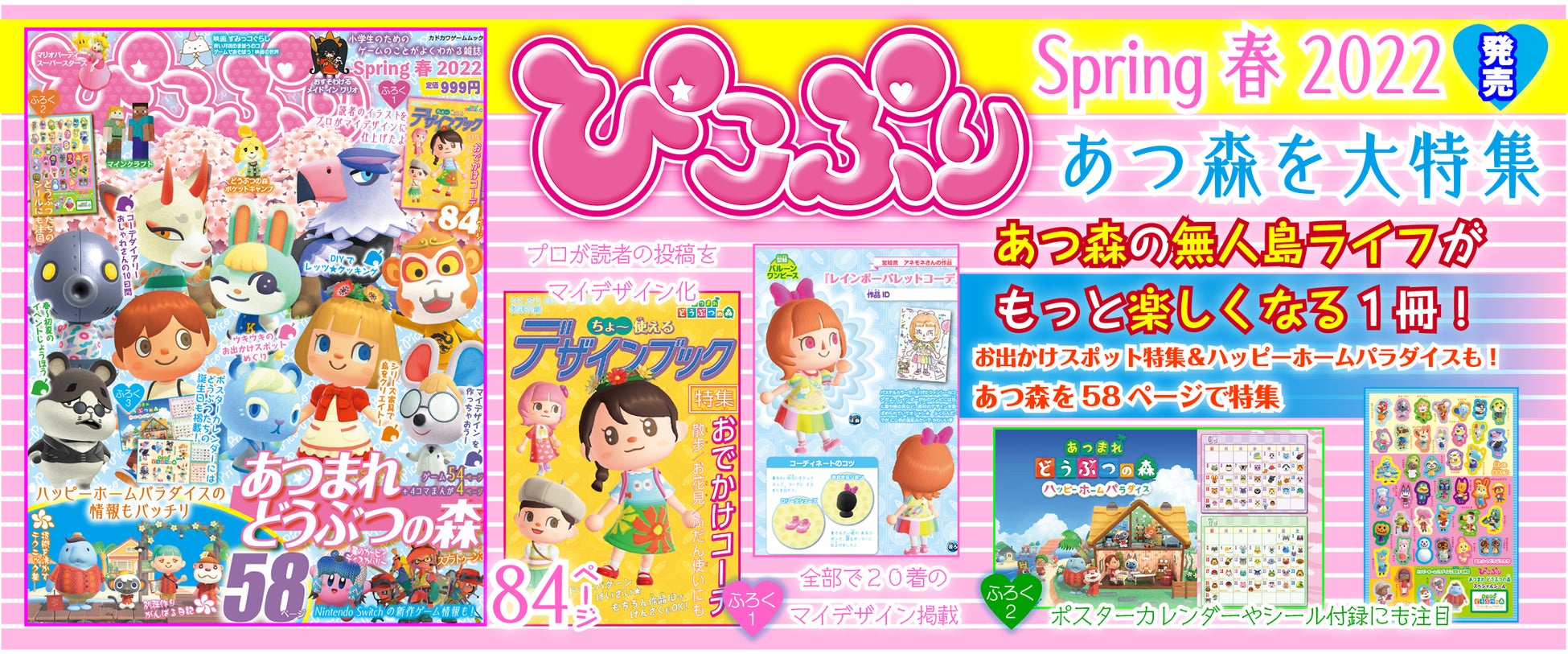 「あつまれ どうぶつの森」&ハピパラ大特集! 親子で無人島ライフ&別荘づくりを楽しめる子ども向けゲーム情報誌『ぴこぷり Spring 春 2022』本日発売!!
