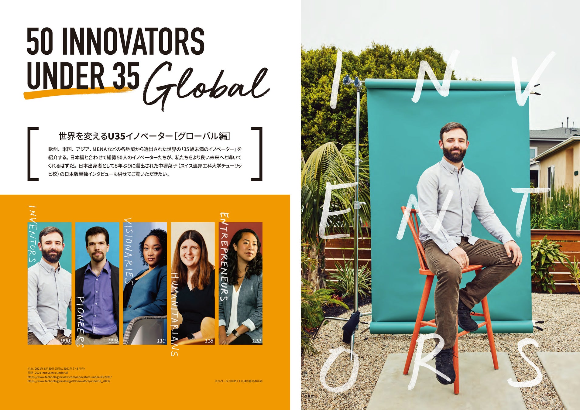 本号では、MITテクノロジーレビューが選んだ「35歳未満のイノベーター」50人を一挙に紹介します。人工知能/ロボット工学、インターネット、通信、コンピューター/電子機器、輸送、持続可能性、生物工学など、最先端の分野で注目を集める若きイノベーターは誰なのか、テクノロジーの“ホット・ゾーン”をぜひお確かめください。