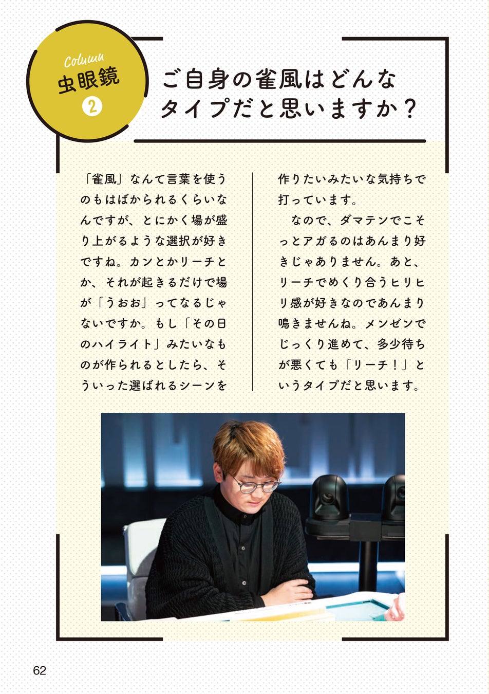 また、著者の虫眼鏡氏や内川氏の「麻雀への想い」など、ふたりの魅力がわかるコラムページもあり、麻雀好きだけでなくファンも楽しめる内容になっています!