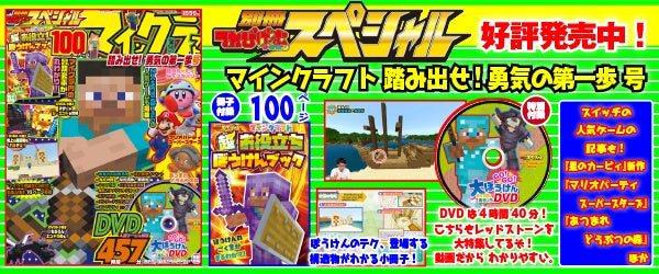 また、春から新しく「マイクラ」生活を始めた初級者に向けた記事も16ページで大特集し、「マインクラフト」を始めたばかりのお子様もスムーズに冒険を進めることができる内容となっています。