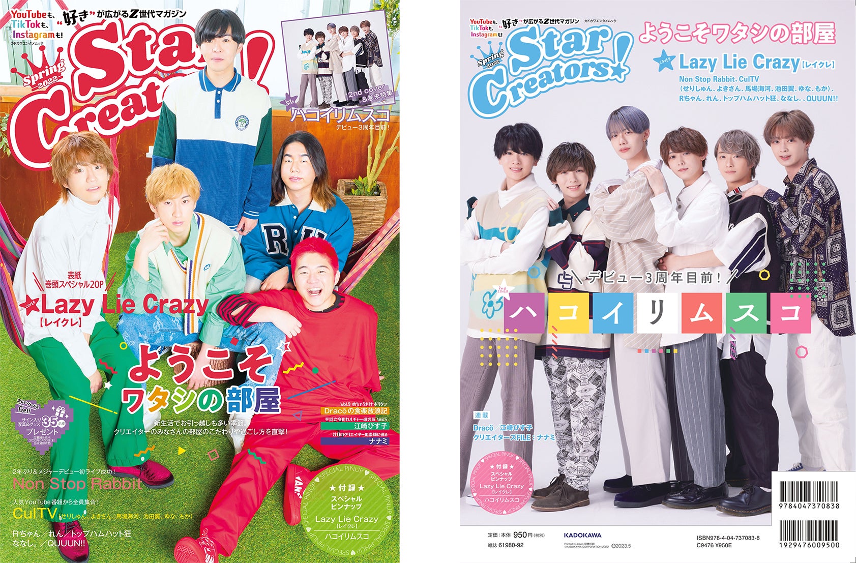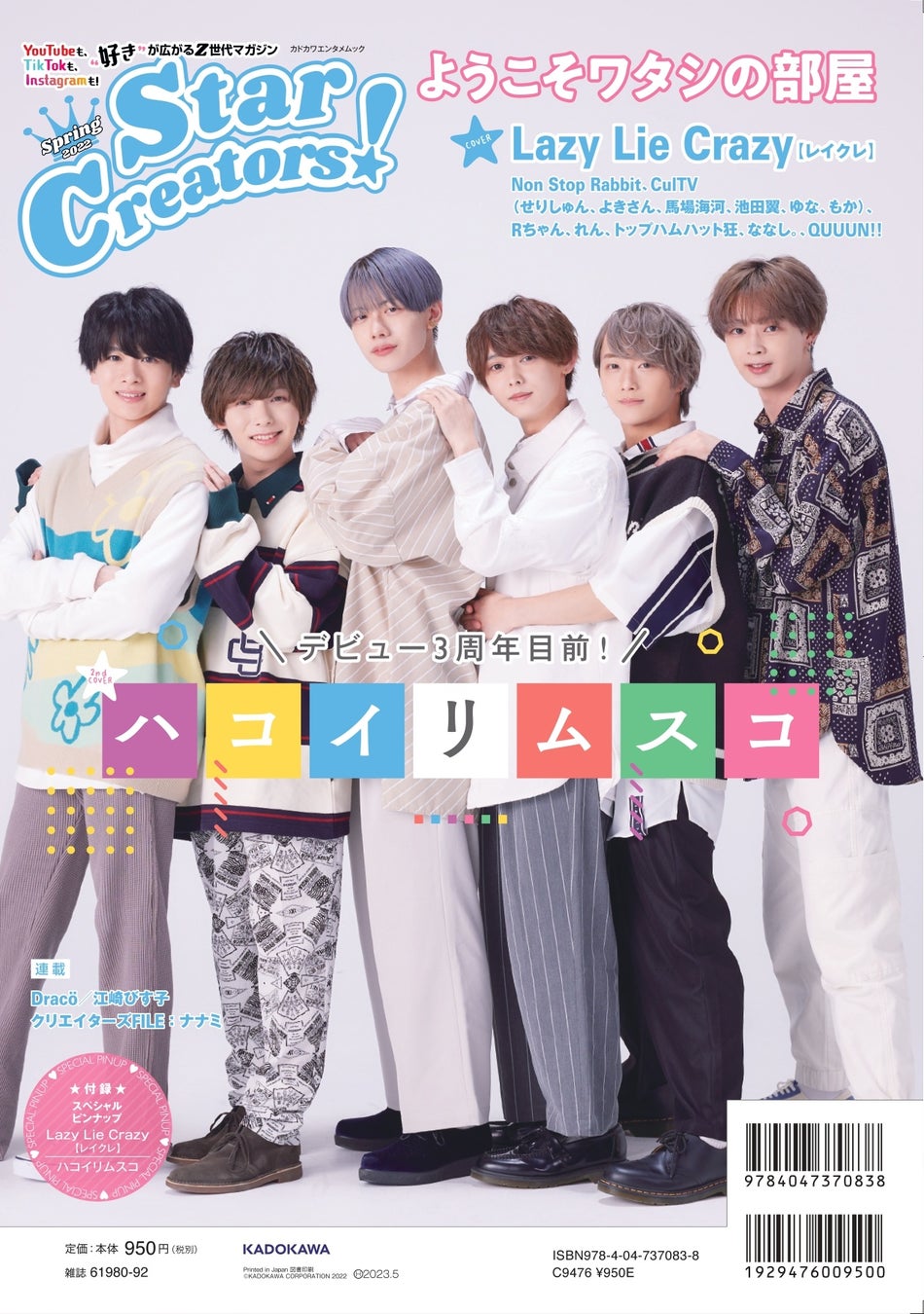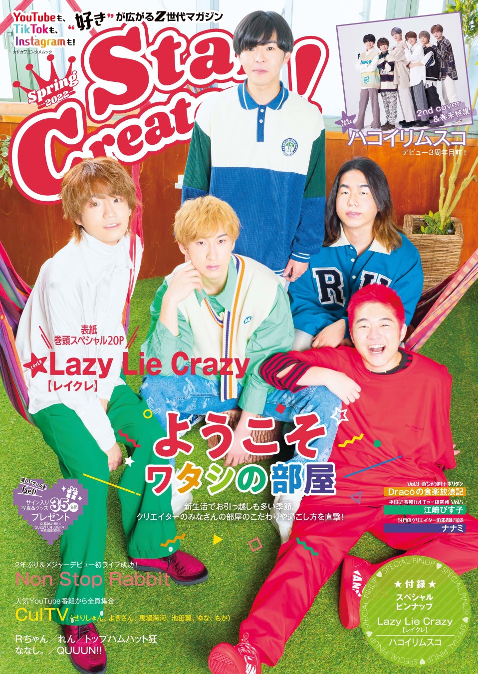 昨年チャンネル登録者数100万を越え、ぐんぐん加速中のLazy Lie Crazy【レイクレ】初の表紙巻頭大特集! 2nd Coverにはデビュー3周年を控えたハコイリムスコが登場します。