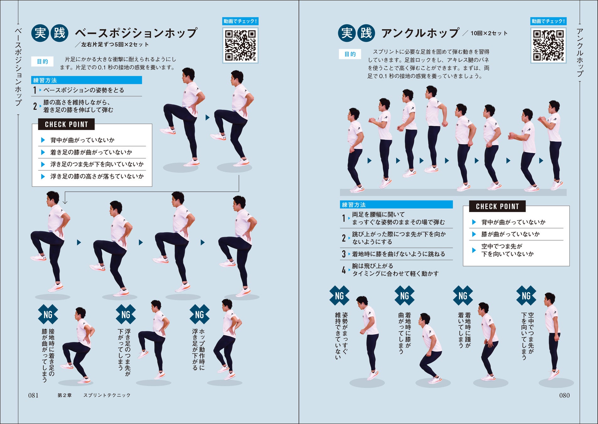 第2章は『スプリントテクニック』と題し、速く走るために必要なテクニックを7ステップに分けて解説し、そのなかでテクニックを習得するためのトレーニングを紹介します。