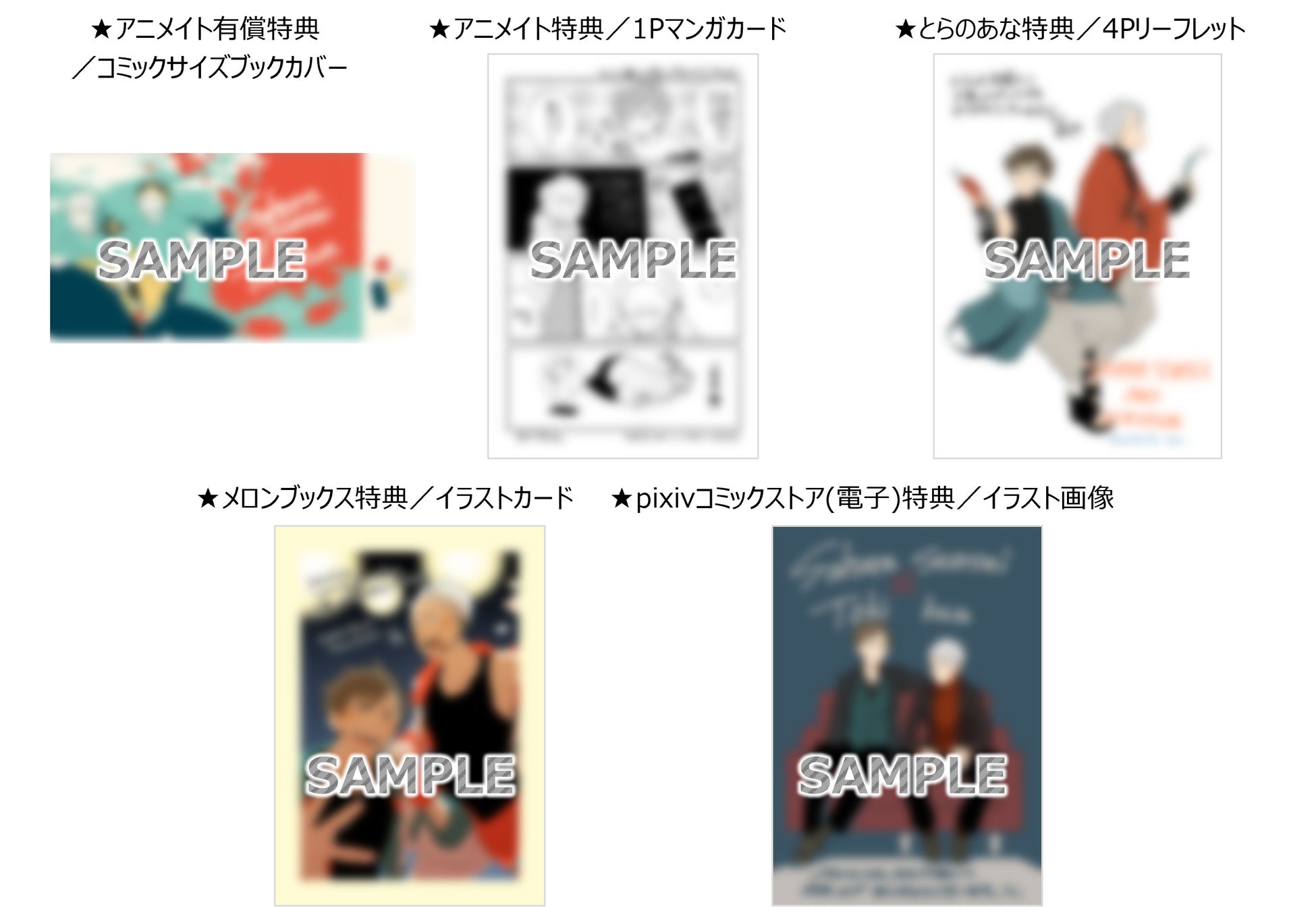 各書店で新刊を購入すると鳥谷コウ先生描き下ろしの特典をプレゼント!さらにアニメイトではコミックサイズブックカバーがついてくる有償特典もございます♪お見逃しなく!!