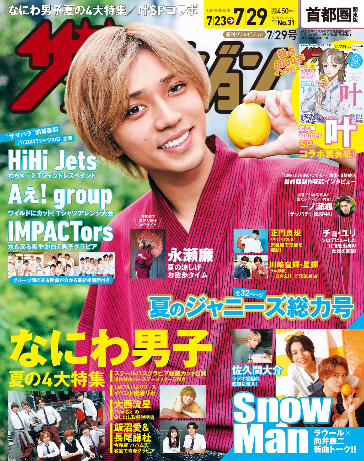 表紙はドラマ「新・信長公記—」で織田信長役を務める永瀬廉 SPコラボ裏表紙は、癒しボイスで人気のVTuber・叶がレモンを持つ!なにわ男子のイベントからグラビアまで掲載、夏のお仕事BOOKも!!