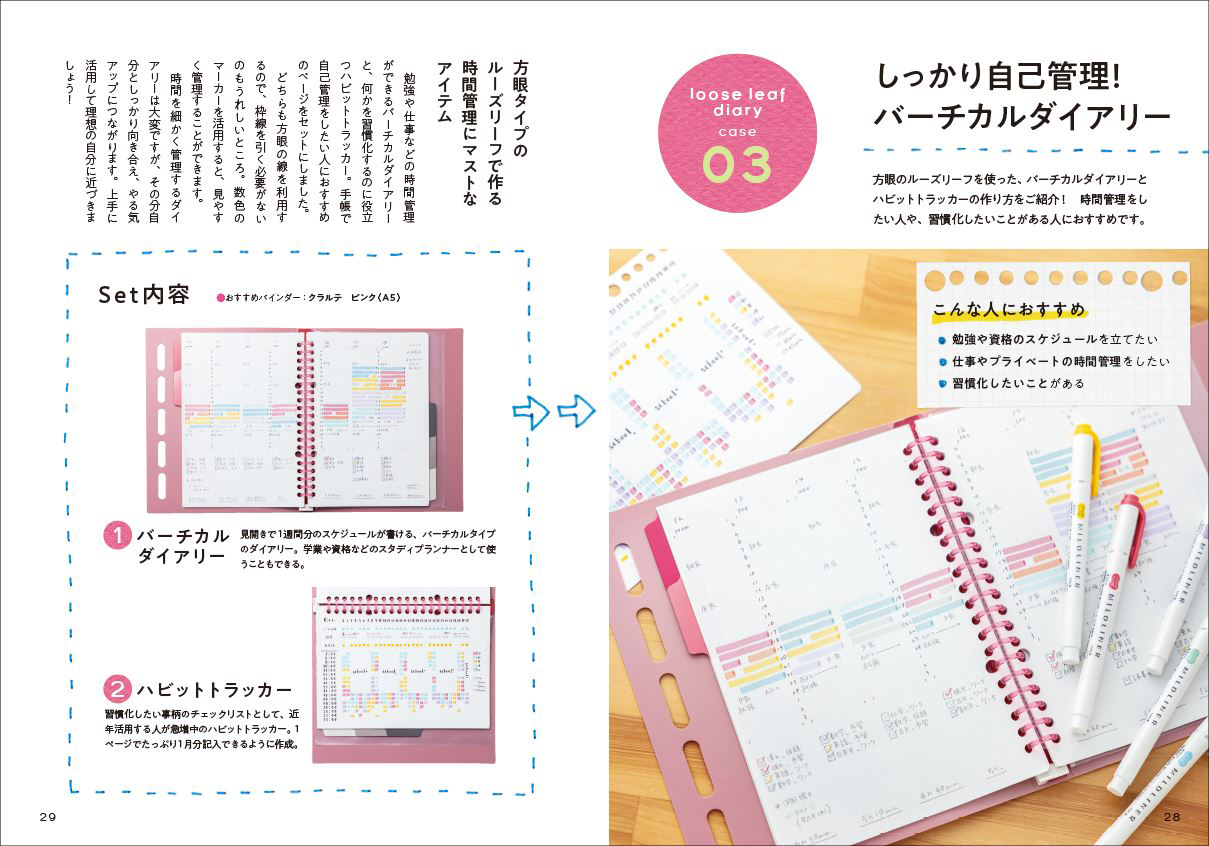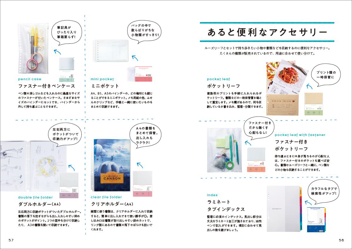 他にも、便利な使い方のアイデアやアイテム活用法、仕事から趣味に至るまであらゆる場面で活用できる27のオリジナルページの作り方、かわいいデコ術まで、知らなかったルーズリーフの魅力がたっぷり詰まった一冊です!