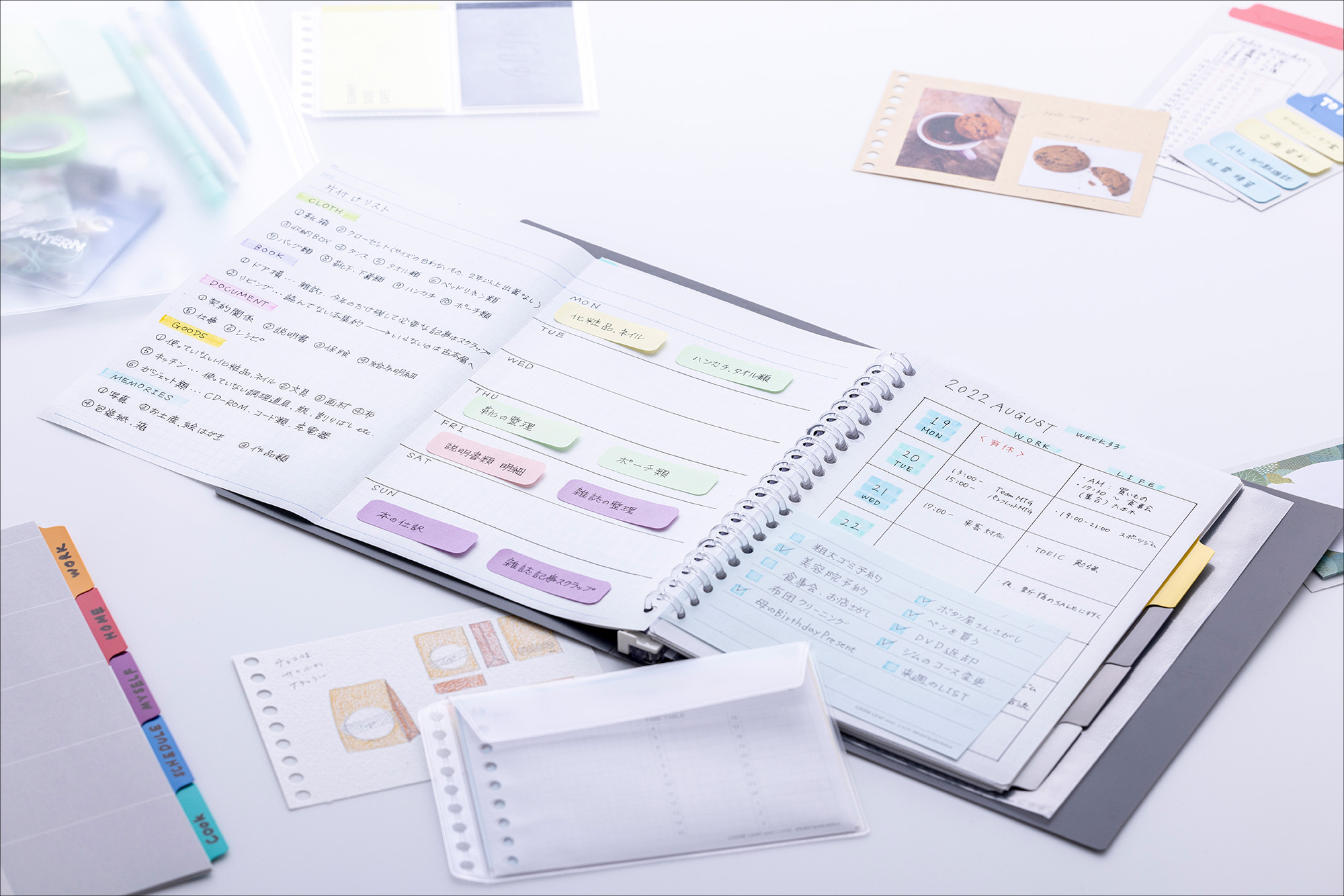 ページを好きなところに追加したり、順番を並べ替えて使うことができるルーズリーフ。実はノート以上に自由度が高く、便利な関連アイテムも豊富! アイデア次第で使い方は無限大です。