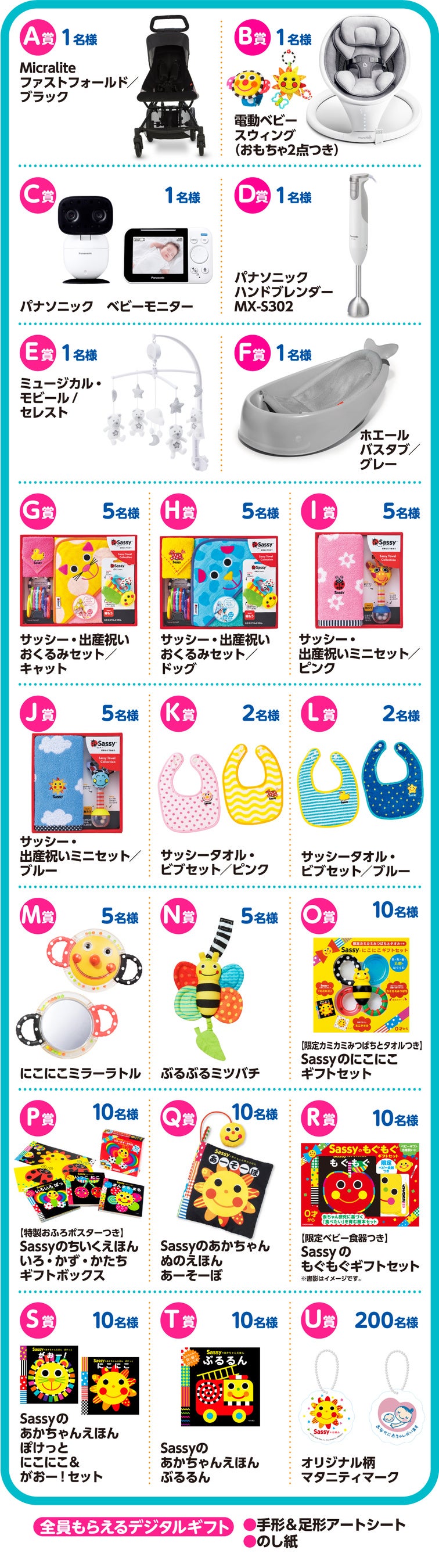 ①300名様にベビーカーや電動バウンサーなど豪華育児グッズをプレゼント!Sassyオリジナルマタニティマークも!