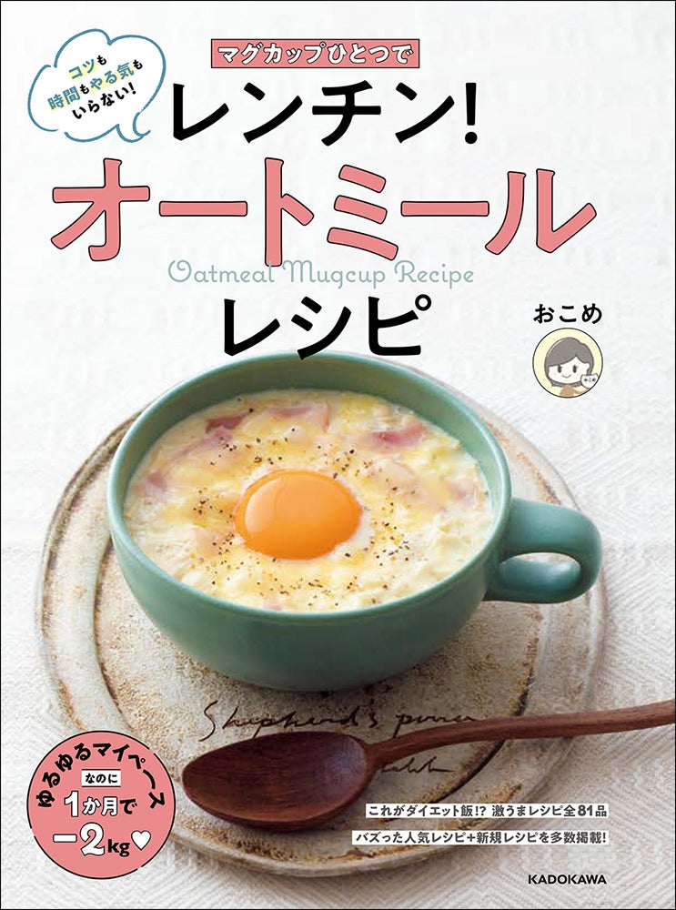 「しかも、材料をマグカップに入れてレンチンするだけ!?」と、たちまち注目を集め、オートミールが苦手だった人からも絶大な支持を集めているおこめの初レシピ集。