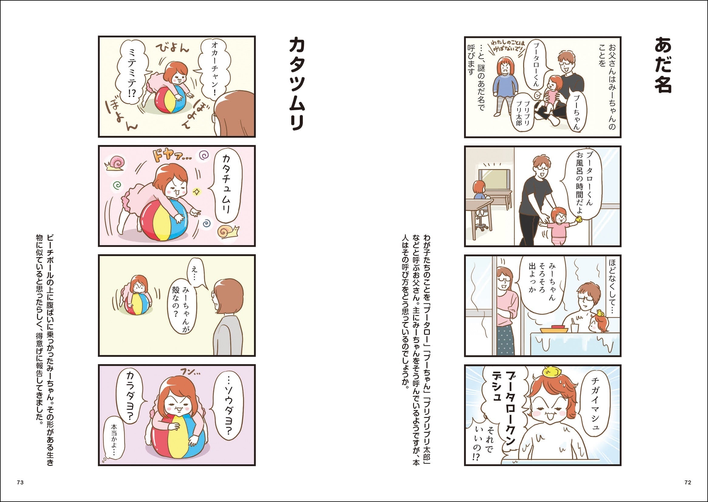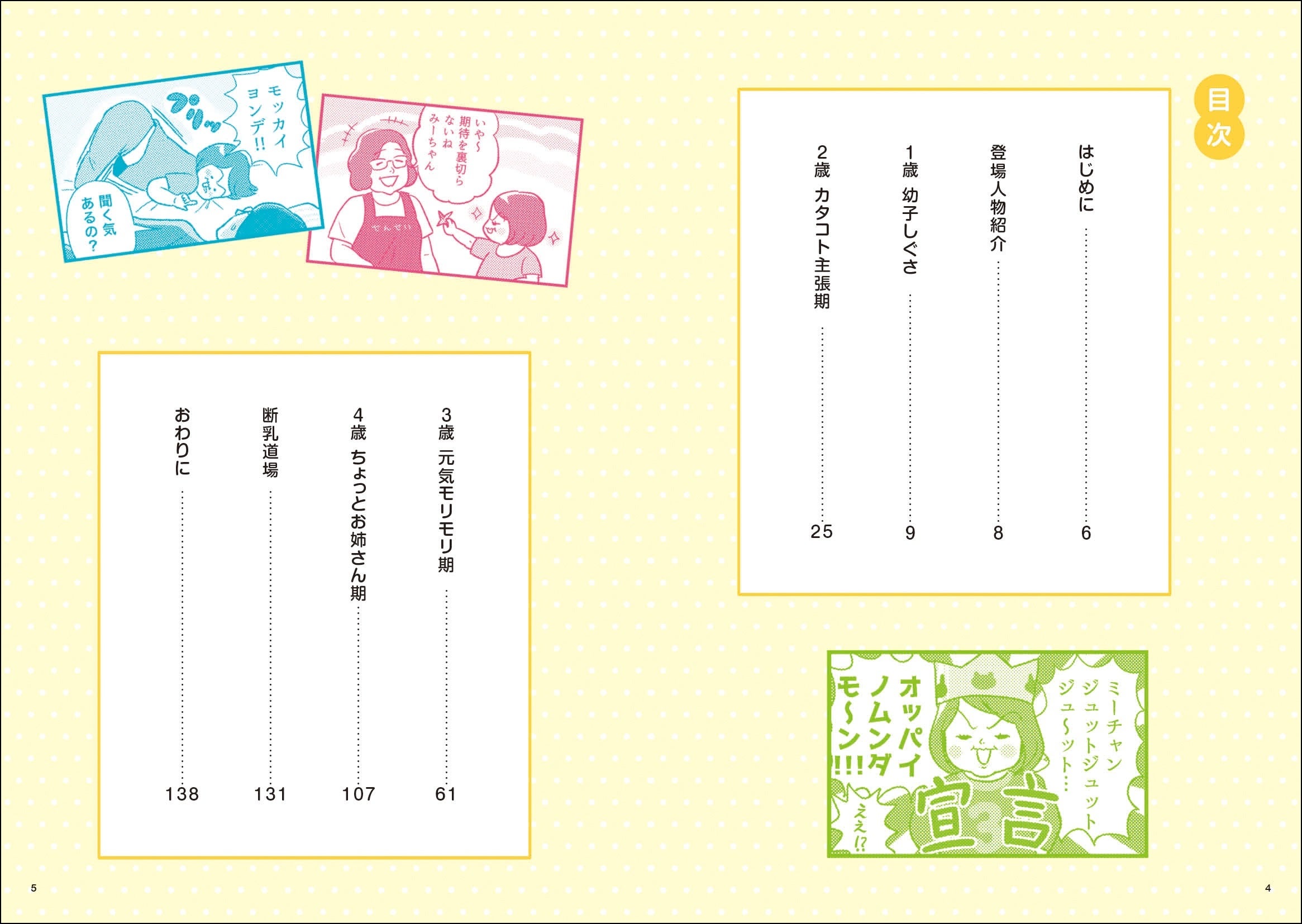 お母さん、おねえちゃん、時々お父さんと過ごす、食いしん坊のみーちゃんの1歳から5歳までを綴った、イラストレーター栗生ゑゐこさんの肩の力が抜けたのんびり子育てまんが。