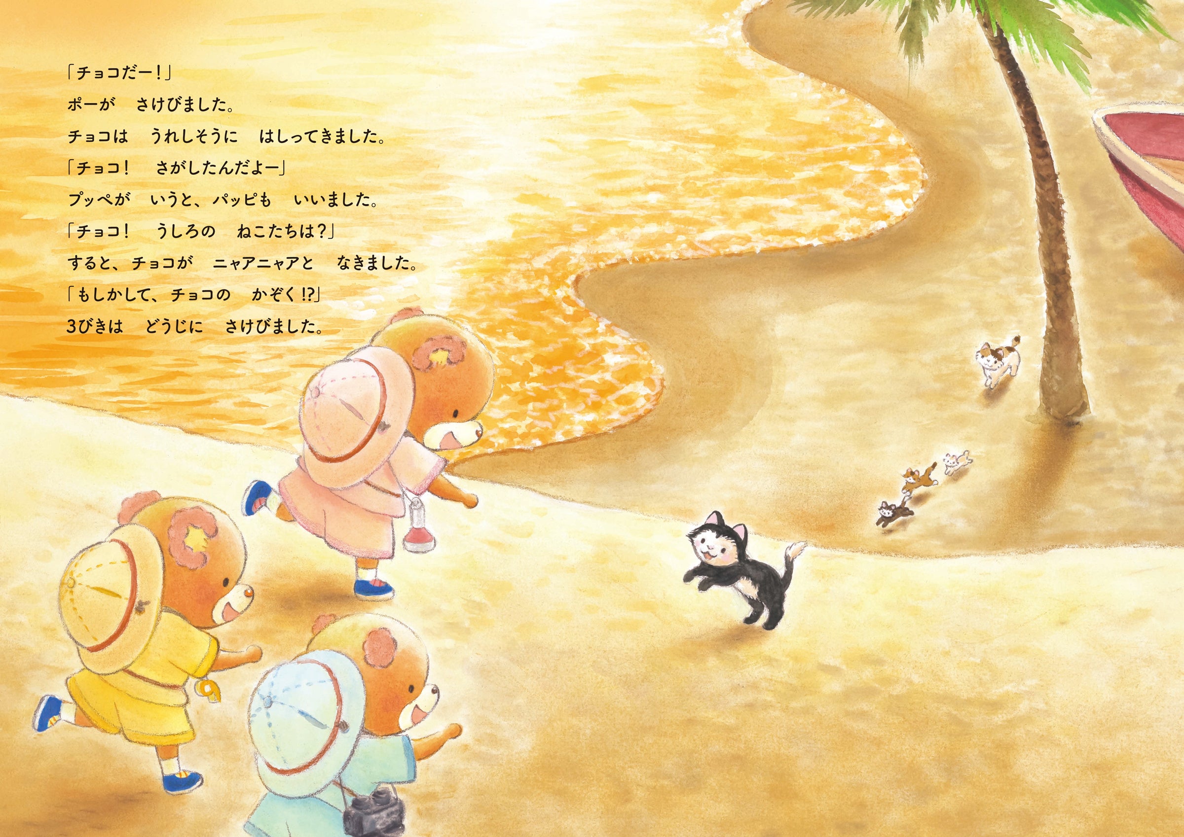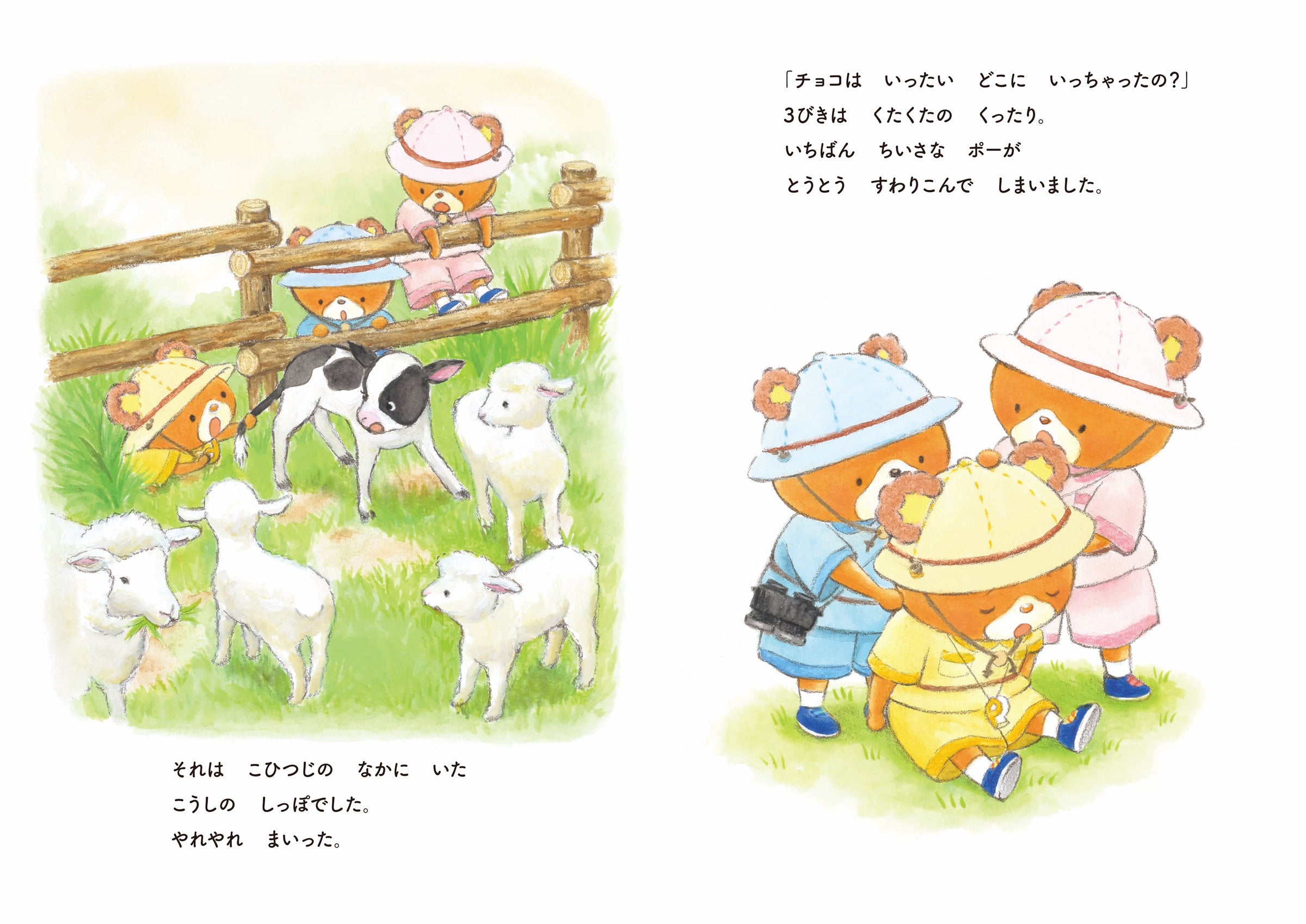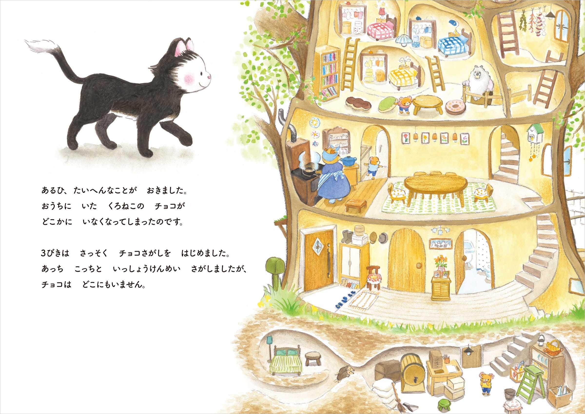 第2巻は、こぐまの3きょうだいが、ネコのチョコをさがす、