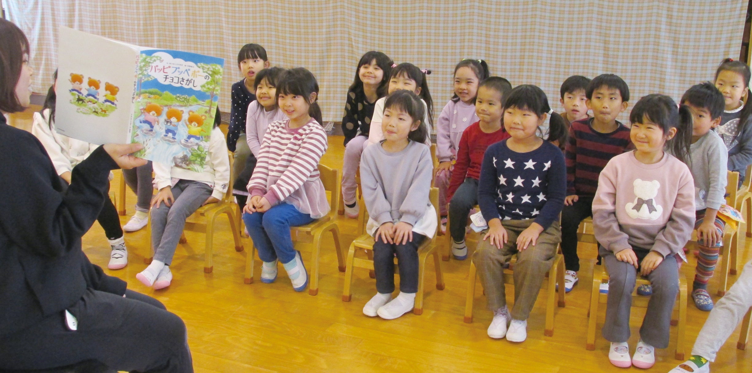 (5) チョコが見つかったシーンでは「本当によかったね」と大盛りあがりでした。(福田町あしぐろ保育所 3歳担当の保育士)