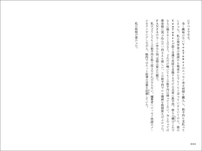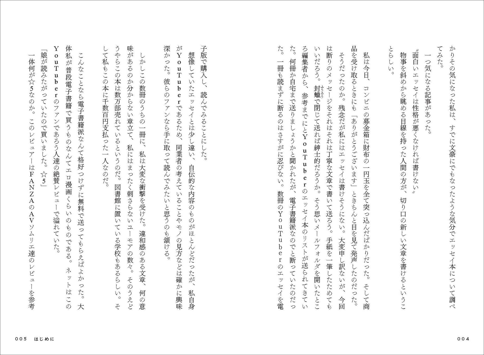 文筆業未経験ながら、YouTube動画と変わらないテンションを感じさせる文章は読みやすく、著者の飾らない人柄が伝わってきます。