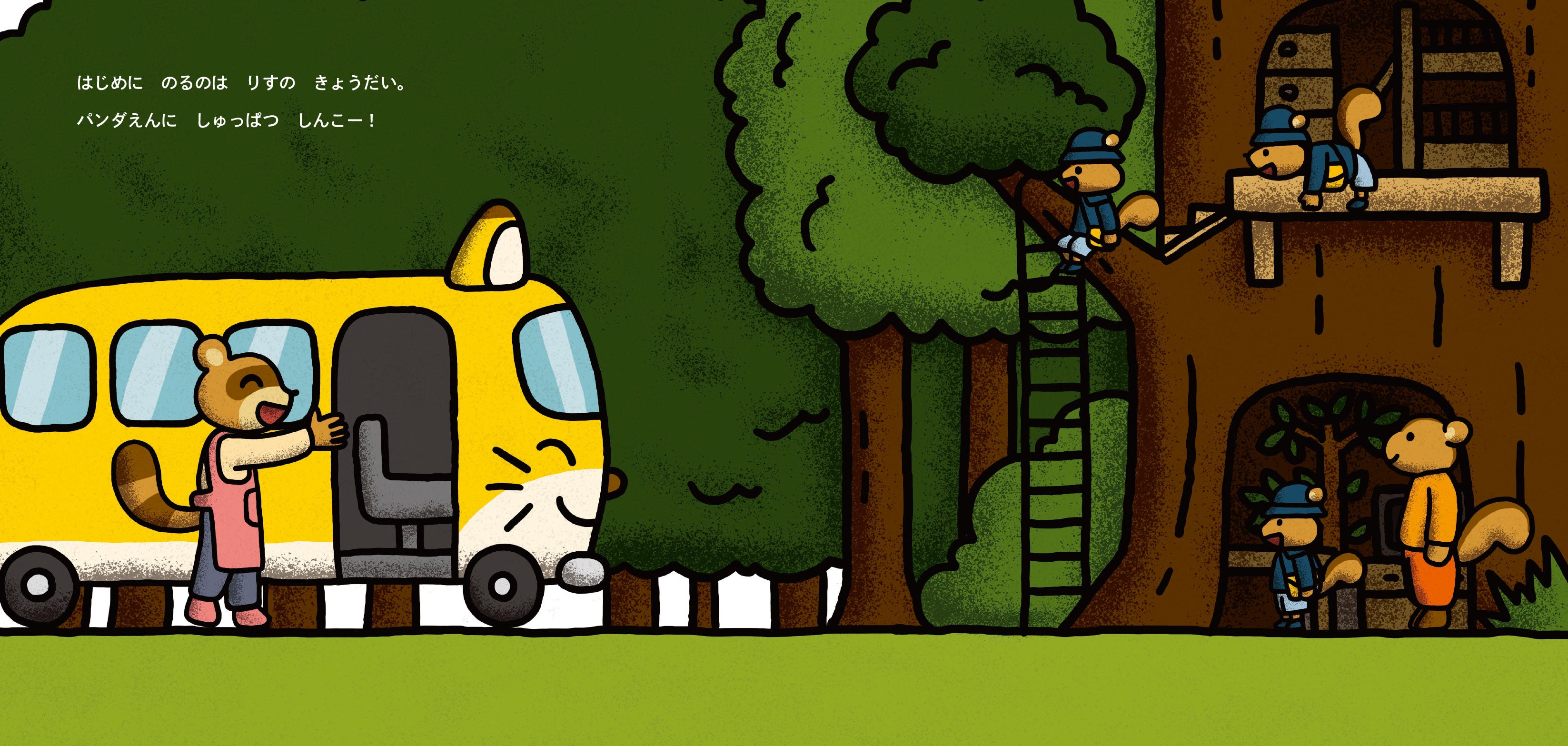 森の中、海の向こう、崖の上。園児たちを迎えに行くため、ぱんだえんの こん先生がいろいろな乗り物に大変身! 次は何に変身するのかな? と予想しながら、「こんこんの こーん!」のかけ声で親子一緒に楽しく盛り上がれます。入園前の読み聞かせで、入園への期待もふくらみます。