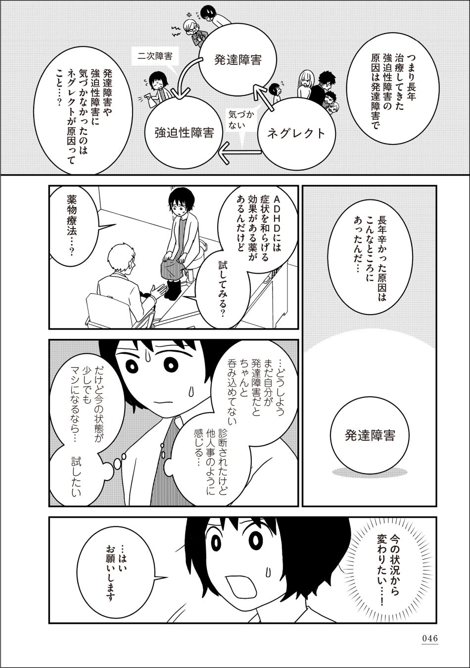 さらに、今まで気づかれなかったのは両親からネグレクトを受けていたからではないか、強迫性障害はそのストレスによる二次障害の可能性がある、という指摘を受けました。