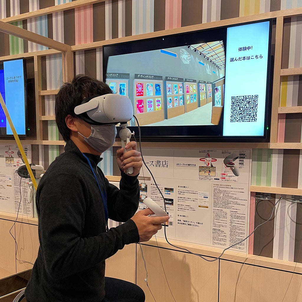書店のない地域でも、公共施設などにデバイスを設置することで、全国どこからでもバーチャル書店で買い物ができる。「メタバース書店」はそんな未来を実現します。