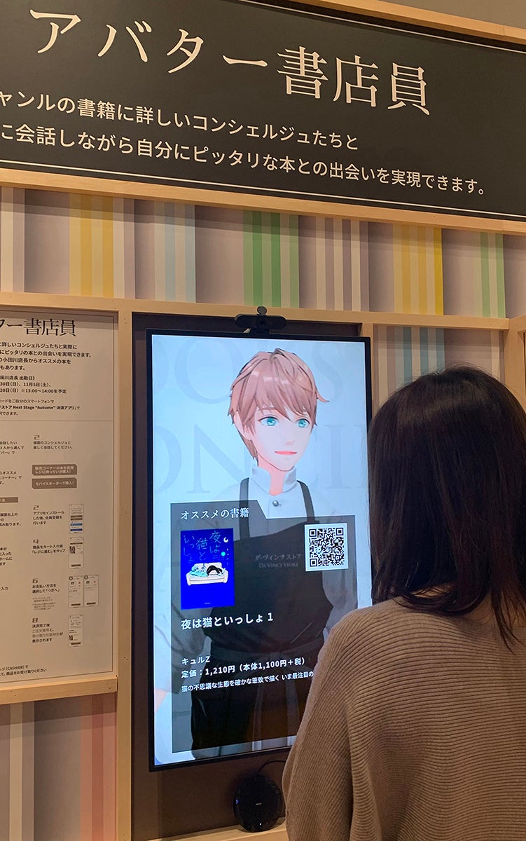書店員や専門スタッフがアバターとしてお客様と実際に会話しながら、ピッタリの本を見つけてくれる体験型コンテンツです。おすすめされた本は、その場で紙か電子かを選んで購入いただけます。