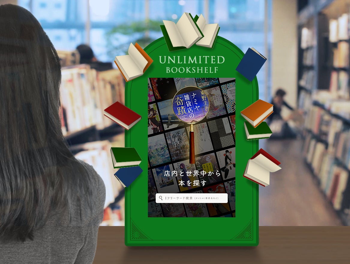 日本国内で購入できるほぼ全ての書籍について検索と注文が可能なデバイスです。書店店頭の書棚にない本でも、その場ですぐ探して注文できることから「アンリミテッド(無限の)本棚」と呼んでいます。