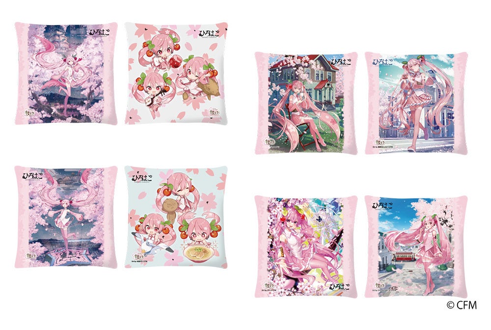 ・「桜ミク×ひろはこ」 スクエアクッション 全4種 各3,500円(税込)