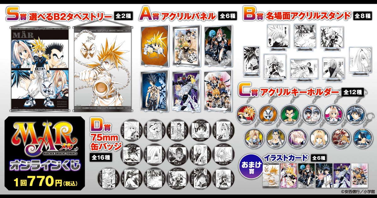 <「MÄR」オンラインくじ概要> 販売期間:2023年6月1日(木)12:00~2023年6月29日(木)11:59 販売価格:1回 770円(税込)※別途発送手数料が掛かります。 |