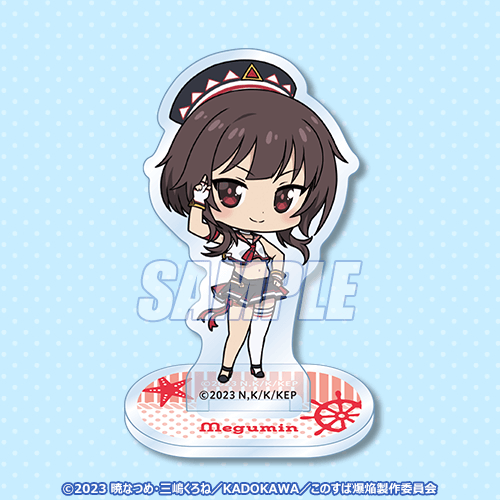 商品はめぐみんとゆんゆんの新規描き下ろしイラストを含むオリジナルグッズとなります。二人の「マリンルック」をテーマに描いた描き下ろしイラストの商品や、ミニキャライラストを使用した商品など豪華景品が盛りだくさん!! また期間中に“リツイートキャンペーン”として、くじ引き堂のTwitter公式アカウントをフォロー&リツイートすると、抽選で3名様に「B賞 アクリルスタンドフィギュアセット」をプレゼント!!