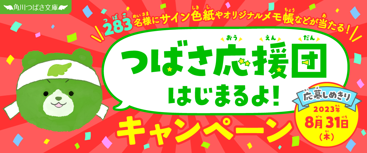 創刊15周年を記念して、つばさ文庫をより深く楽しめるファンクラブ「つばさ応援団」がスタート! さらにいち早く団員になった方を対象に、抽選で283名様にサイン色紙やオリジナルメモ帳などが当たるプレゼントキャンペーンも開催! ぜひサイトをチェックしてください。