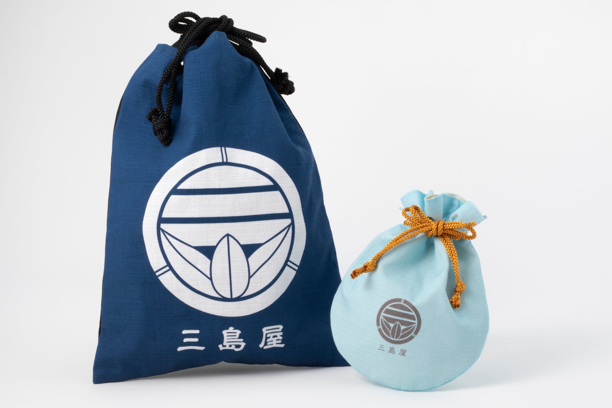 作品の舞台となっている「三島屋」の荷印(ロゴマーク)をあしらった大小の袋物のセットです。荷印は今回のグッズ製作にあたり、宮部氏の監修のもと正式に決定!