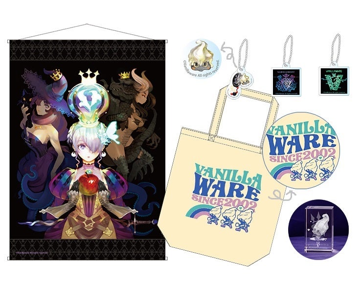 ヴァニラウェアは作品ごとに異なる企業ロゴを制作してきたこともファンにとってはおなじみ。それらの多彩なロゴのなかから、ヴァニラウェア設立当時のロゴ、『オーディンスフィア レイヴスラシル』に使用されたロゴ、『十三機兵防衛圏』に使用されたロゴ、の3点をアクリルキーホルダーにして、セットでお届けします。