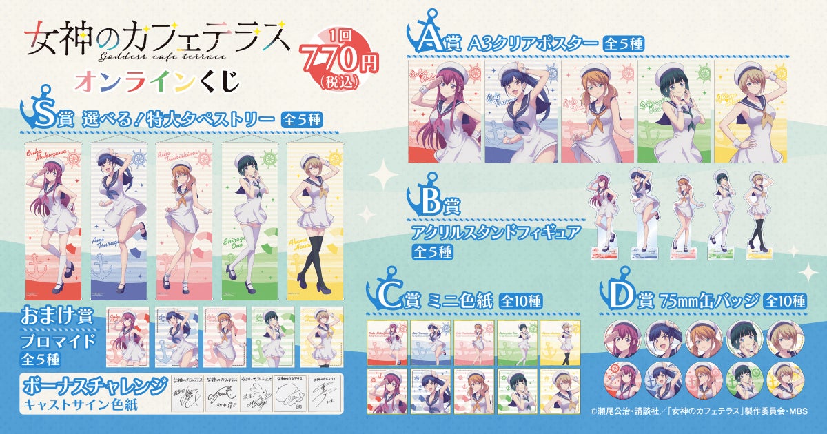 TVアニメ「女神のカフェテラス」よりマリンコーデが可愛いらしいオンラインくじ発売決定! 7月1日(土)12時より販売開始!