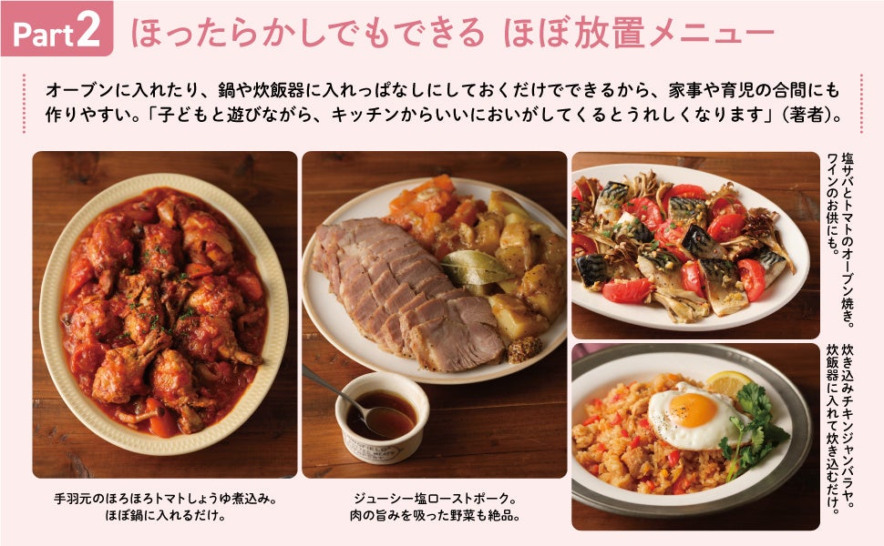 オーブンに入れたり、鍋や炊飯器に入れっぱなしにしておくだけでできるから、家事や育児の合間にも作りやすい。