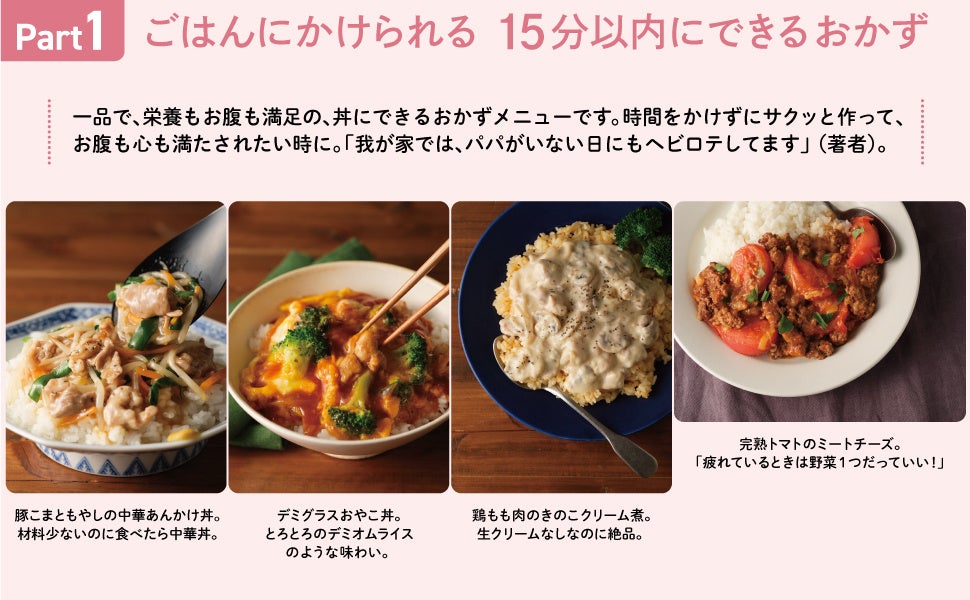 本書に掲載されているのは『何も思いつかない……』というピンチの時でも、著者自身が『これなら作ろう!』と自分を奮い立たせ、自分を救ってきたレシピばかりです。