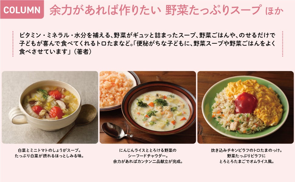 「便秘がちな子どもに、野菜スープや野菜ごはんをよく食べさせています」(著者)