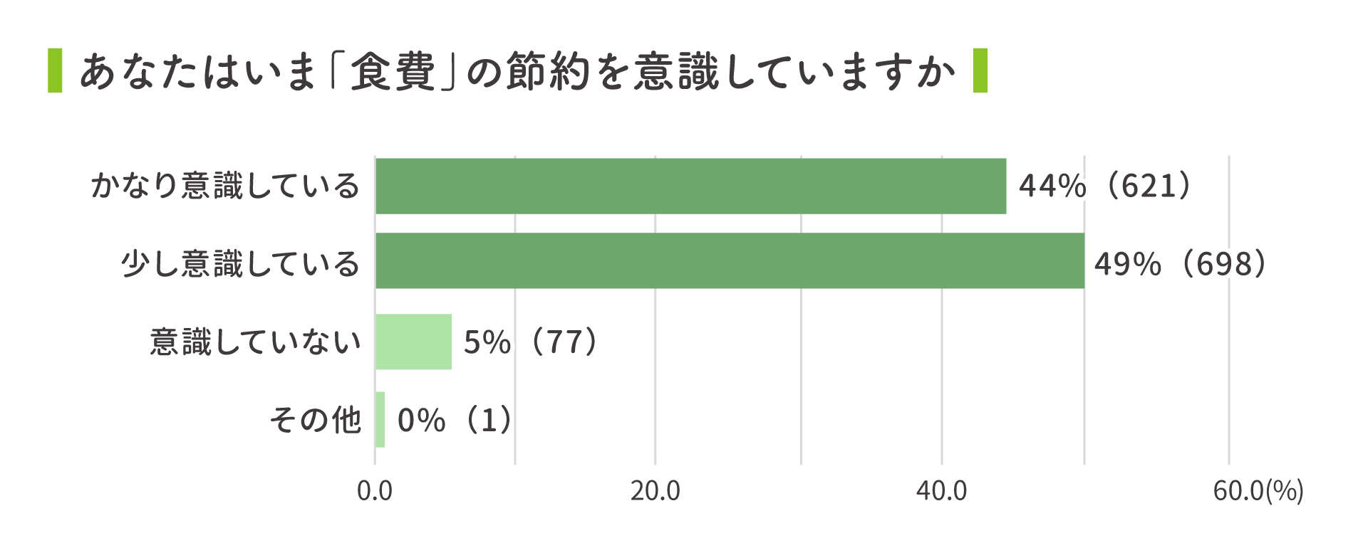 実践していることは「特売品やセール品などを優先して購入する(76%)」「クーポンや割引券などを利用する(59%)」など出費そのものを減らす工夫が多かった一方、「食品をムダにせず使いきる(63%)」「食品をまとめ買いする(42%)」といった、食材をうまく活用する努力をしている人が多く見受けられました。