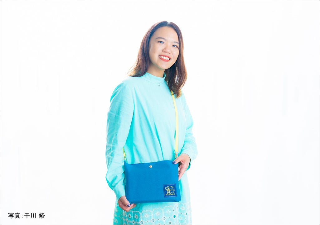 ポーチの生地やスマホストラップの色は、辻村氏セレクトによる「この星」カラーです。