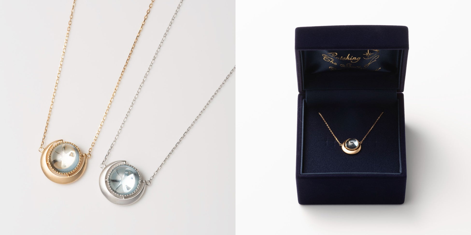 作中に登場する「スターキャッチコンテスト」をモチーフにしたネックレス。望遠鏡のレンズの向こうに星が透けて見えるデザインです。全4種類の中からお選びいただけます。豪華特典付き!