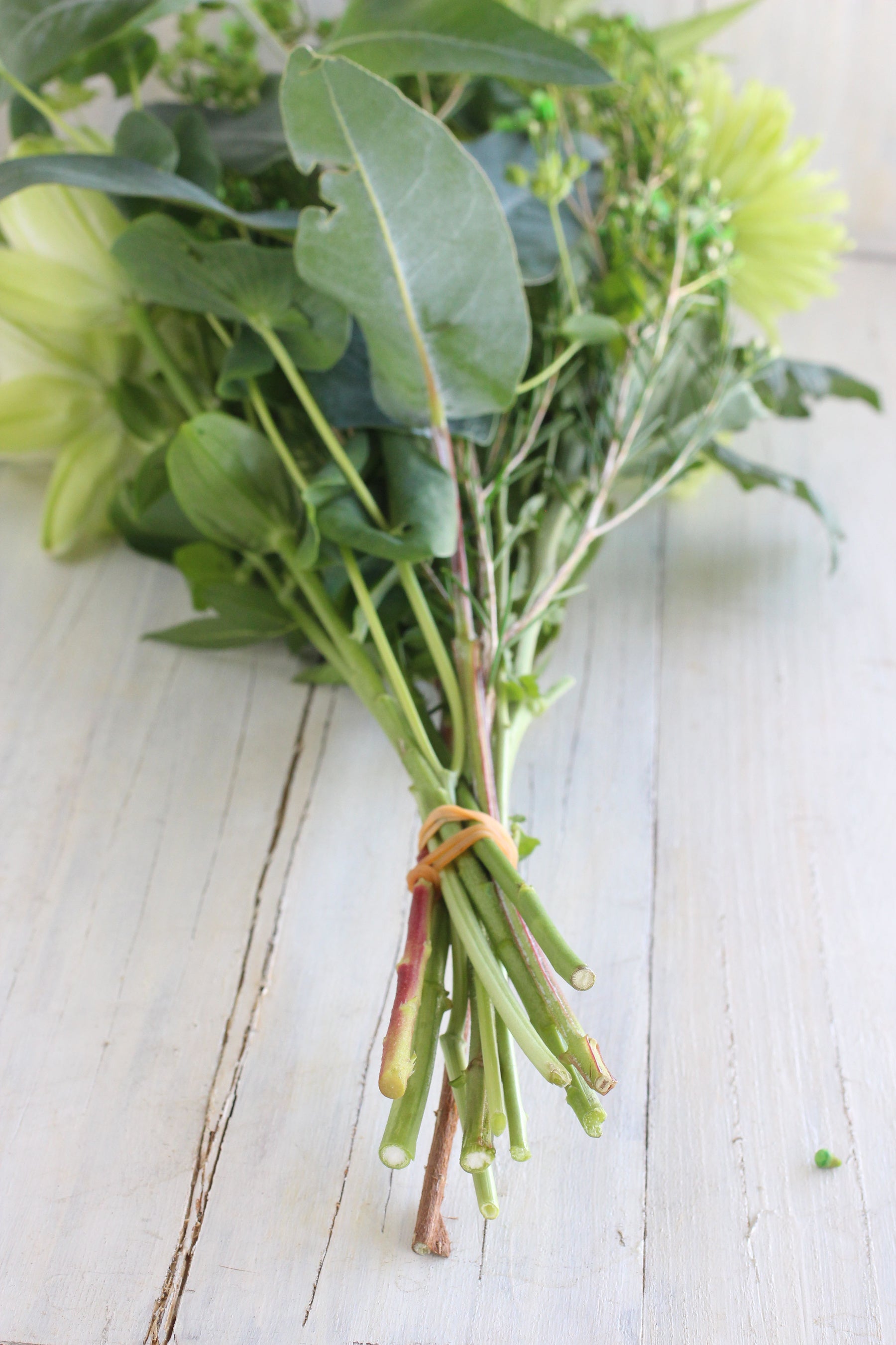 ◆グリーンブーケの内訳は「花と葉、枝、実など10本以上」。