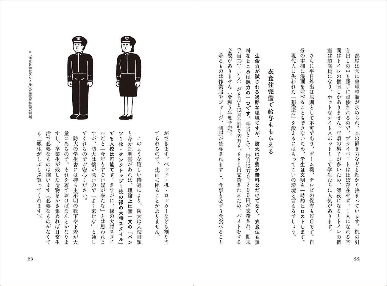 ……ほか、「防大にやってくる学生たち」「学生のヒエラルキーと役職」などコラムも充実!